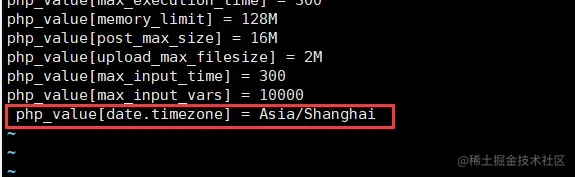 php_value[date.timezone] = Asia/Shanghai #24行,取消注释,修改时区