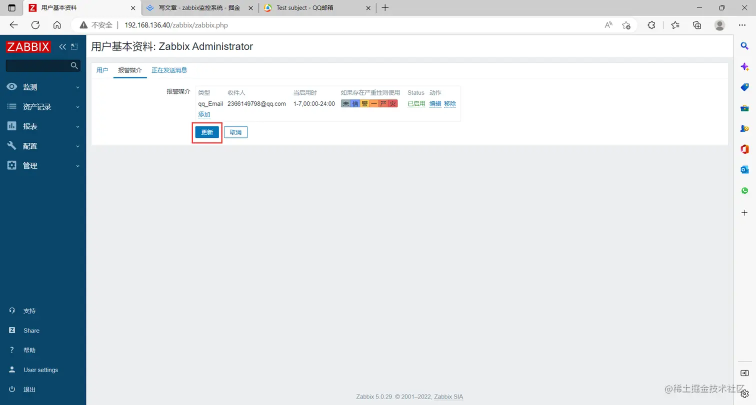 勾选 【已启用】,点击 【更新】