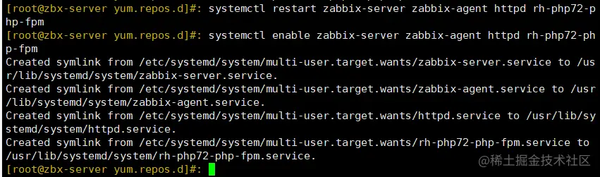 systemctl enable zabbix-server zabbix-agent httpd rh-php72-php-fpm
