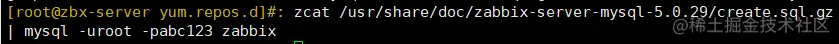 zcat /usr/share/doc/zabbix-server-mysql-5.0.29/create.sql.gz | mysql -uroot -pabc123 zabbix
