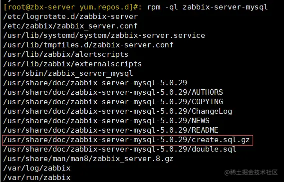 rpm -ql zabbix-server-mysql #查询 sql 文件的位置