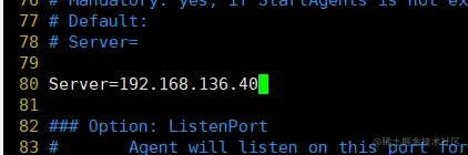 Server=192.168.136.40 #30行,指定 zabbix 服务端的 IP 地址