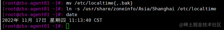 mv /etc/localtime{,.bak} #修改本地时间名称