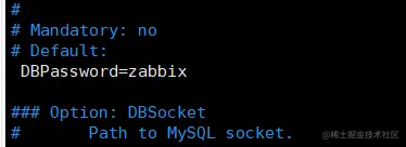DBPassword=zabbix #124行,指定 zabbix 数据库的密码
