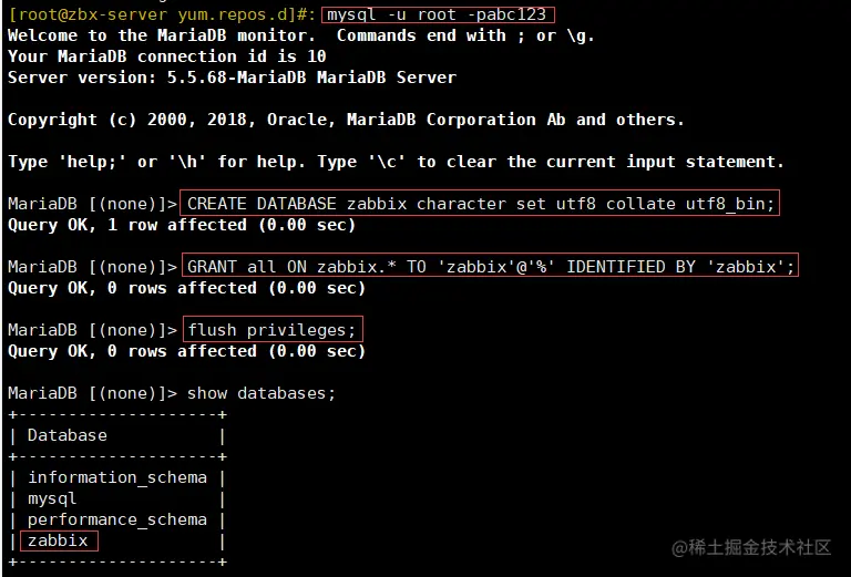 6. 安装 zabbix 所需的数据库
