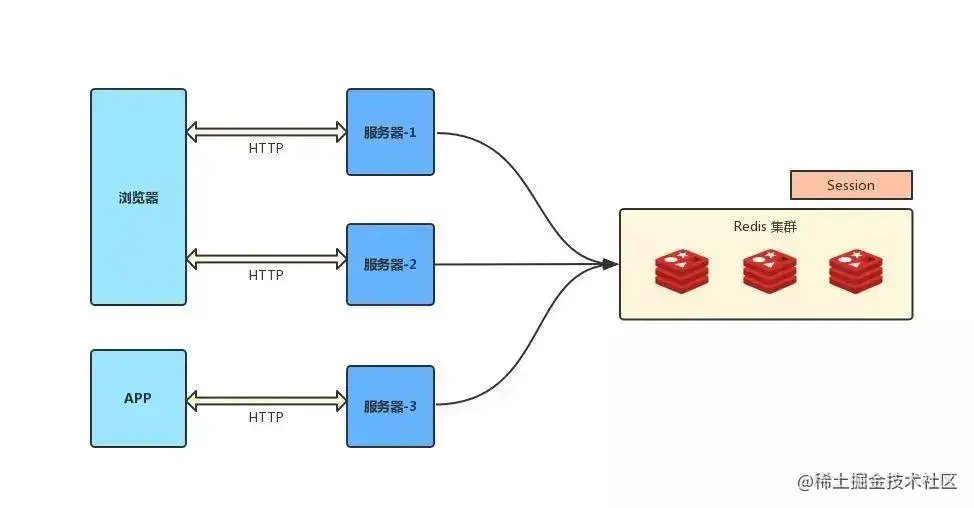 - 不仅可以跨服务器 session 共享,甚至可以跨平台(例如网页端和 APP 端)