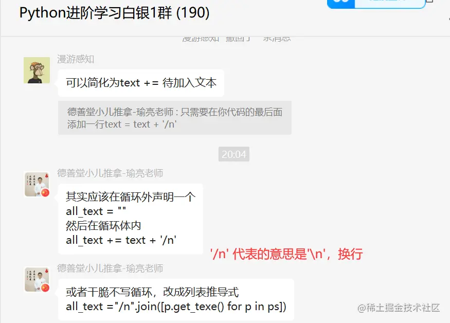 后来【瑜亮老师】也给了一个指导,只需要在代码的最后面添加一行text = text + '/n'。