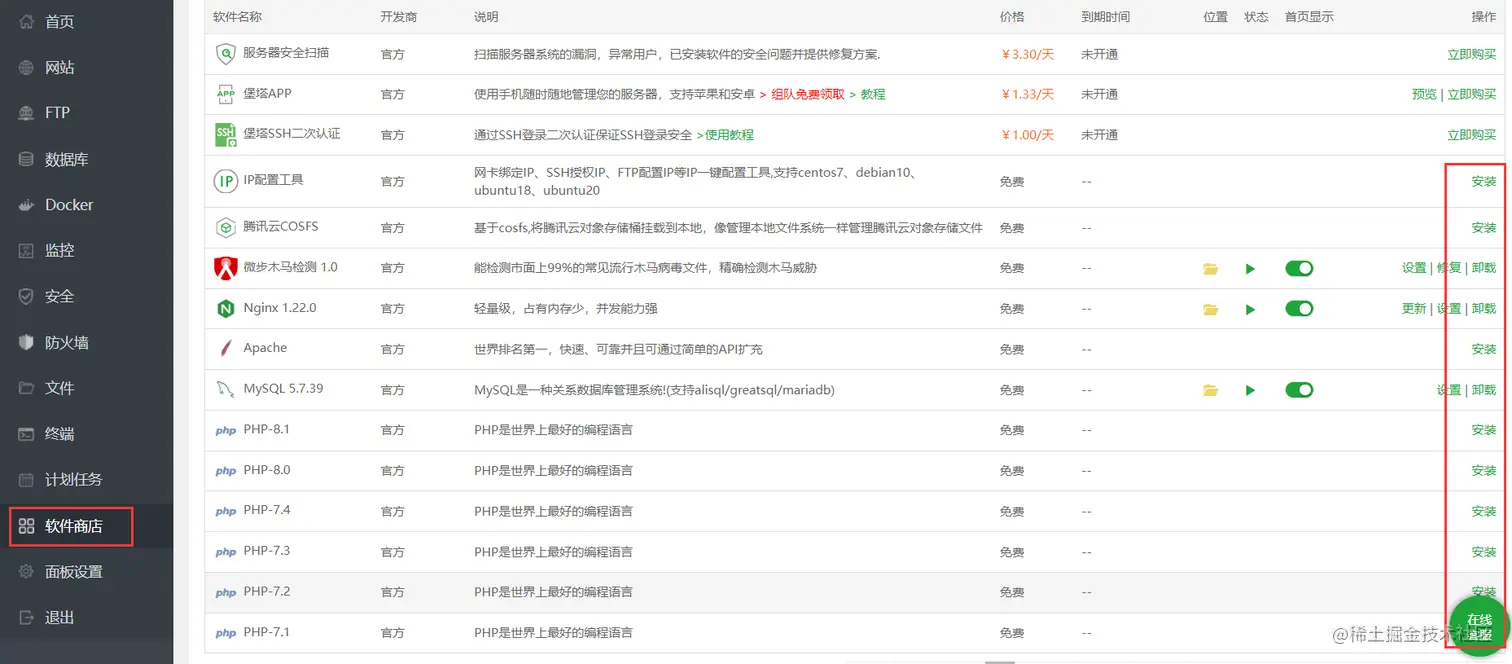 点击软件商店,然后就可以下载你想要的软件到你的服务器中了