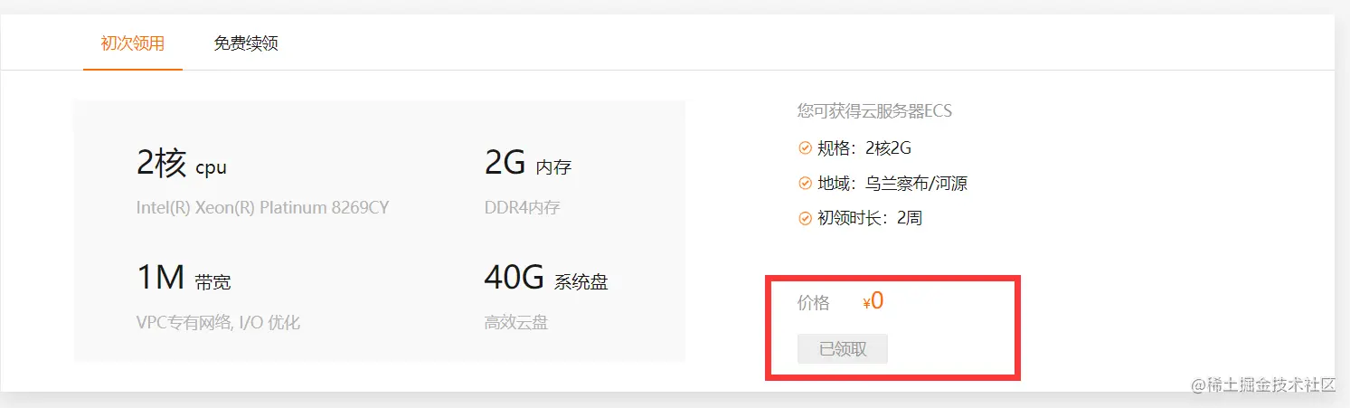 新人在这里就可以领取到服务器了,配置基本可以选择默认的,就是操作系统我选择了CentOS。