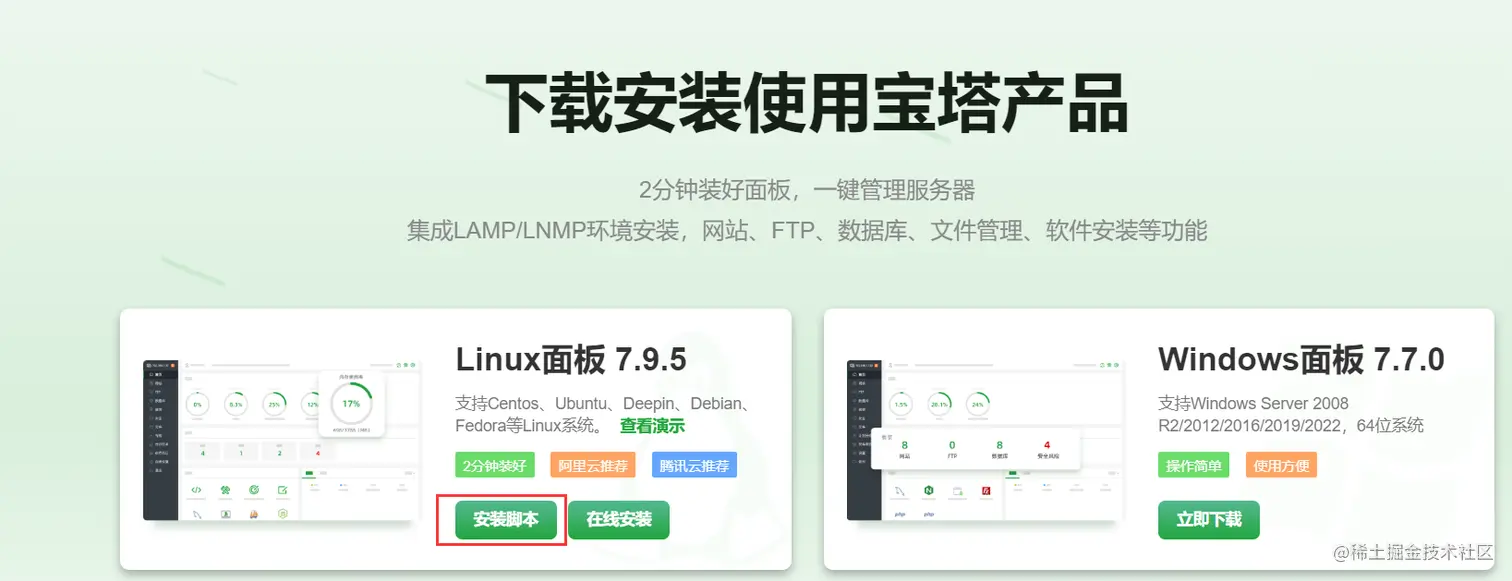 打开官网点击立即下载后就进入以下页面,点击安装脚本