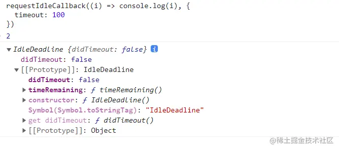 2代表的是函数返回值的id,可以把它传入 Window.cancelIdleCallback() 方法来结束回调。