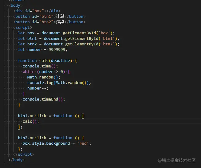先看第一段代码和表现,计算会一直占用你的主线程,导致你用户的交互没法去吧背景更改颜色。