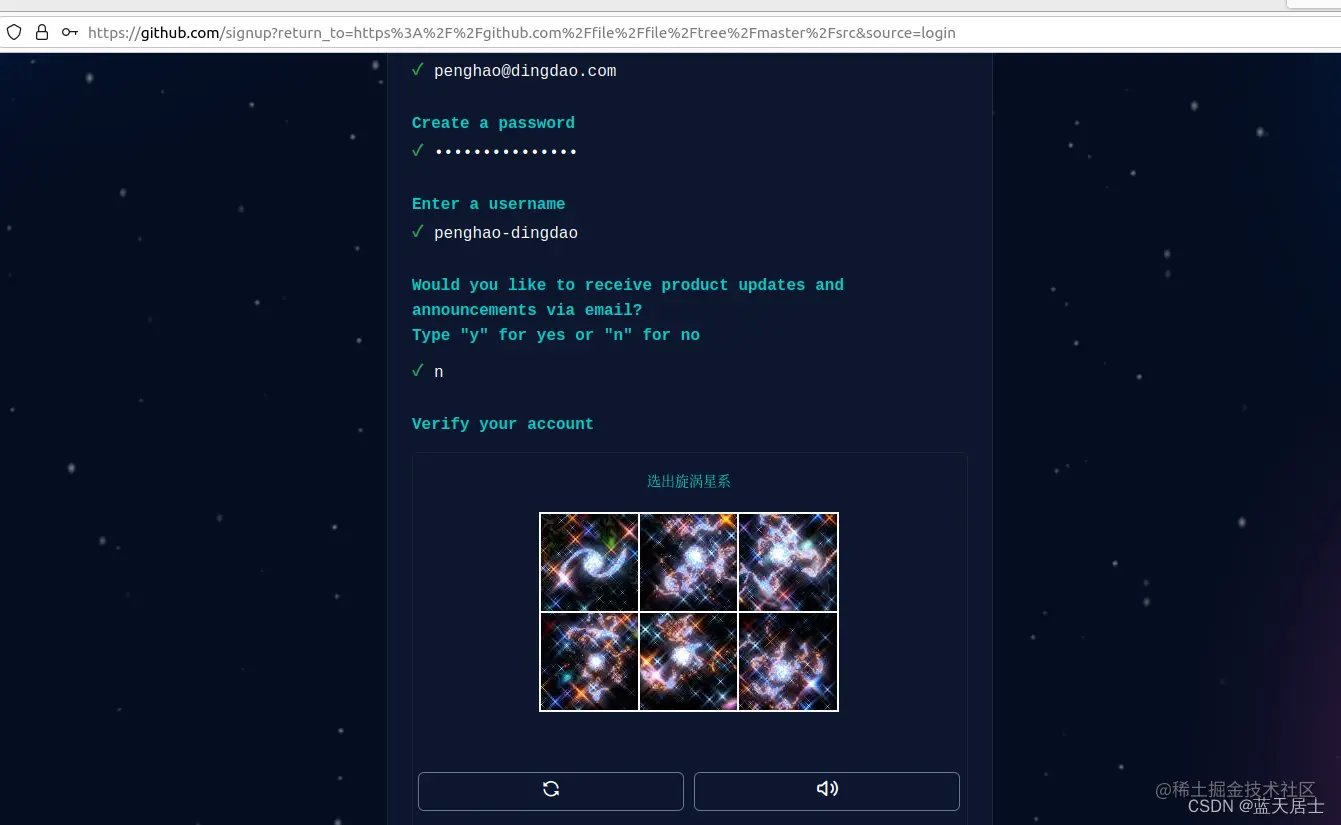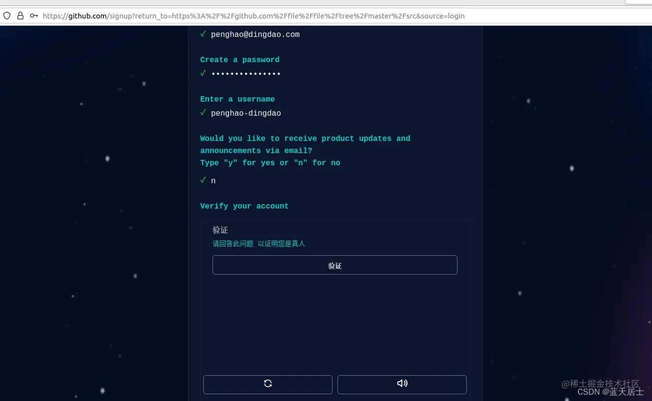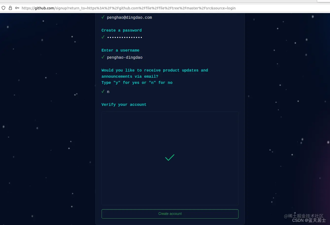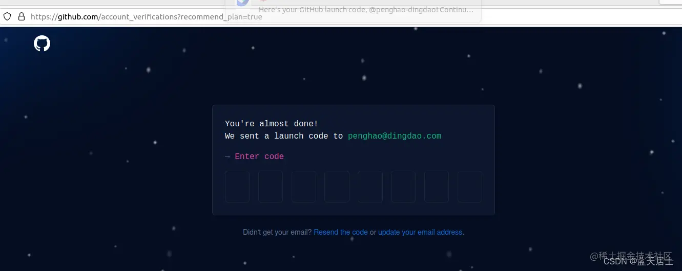 11. 点击“Create account”按钮后,出现如下界面,要求输入发到邮箱中的验证码: