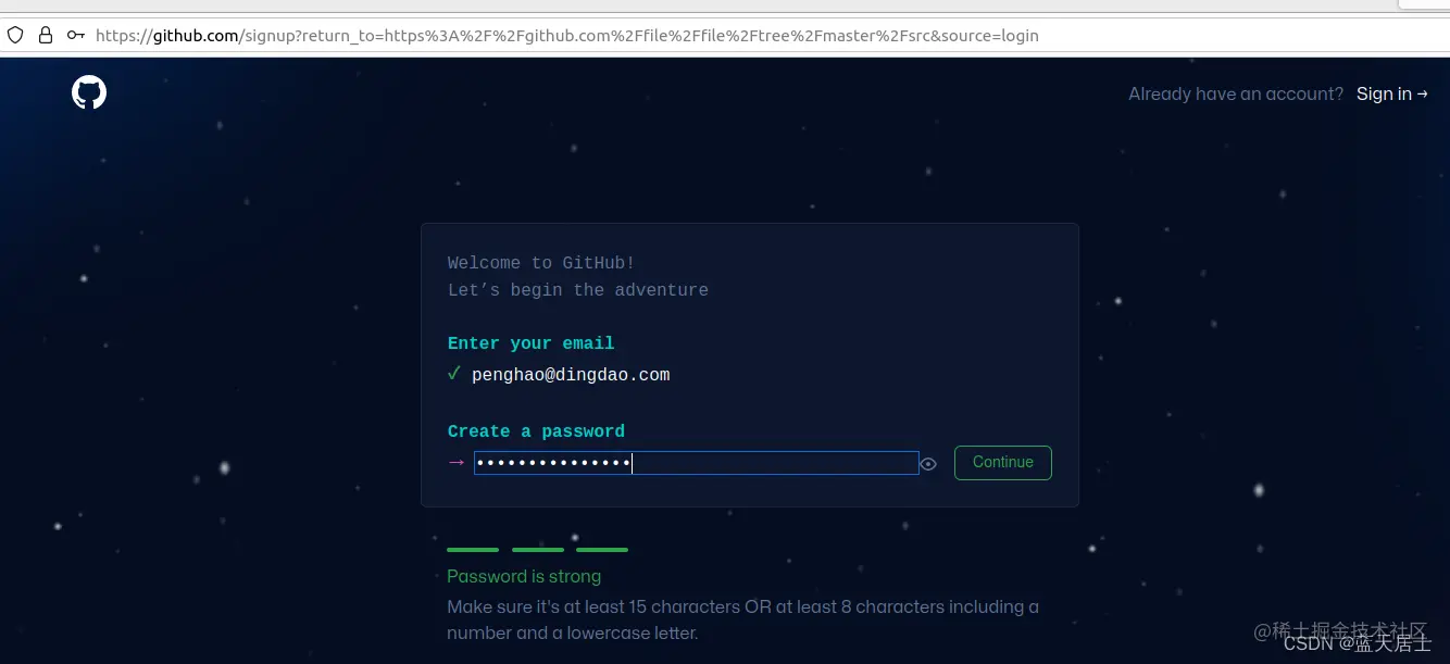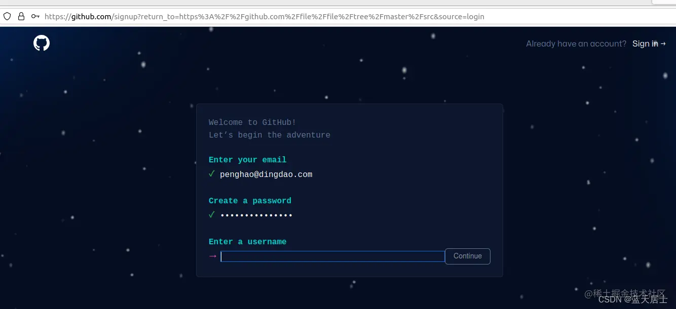 3. 点击上图中的“Create an account”,进入以下链接: