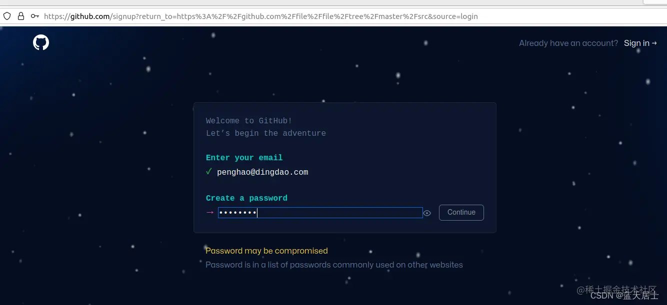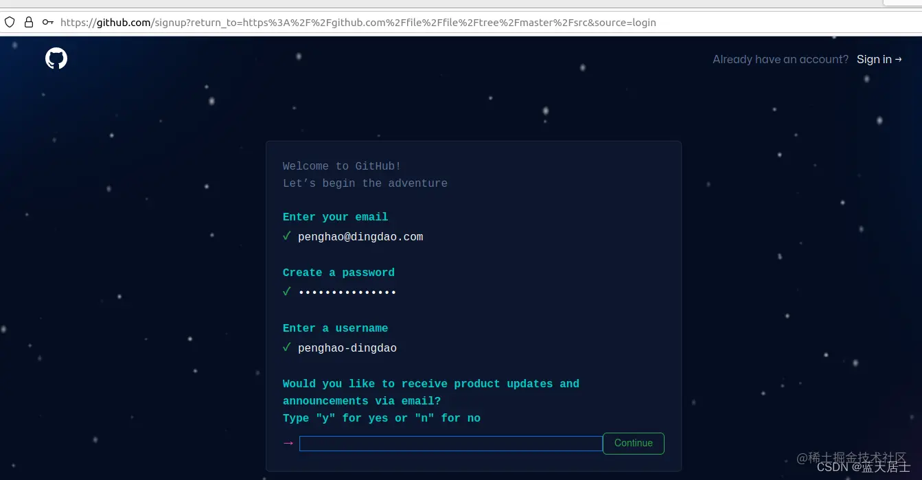 8. 填写n并点击“Continue”按钮后,出现如下界面: