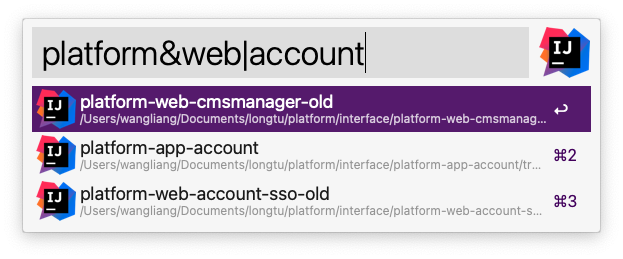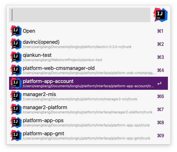@liangshen/alfred-intellij-idea: npm地址 github仓库地址 (option + I)
