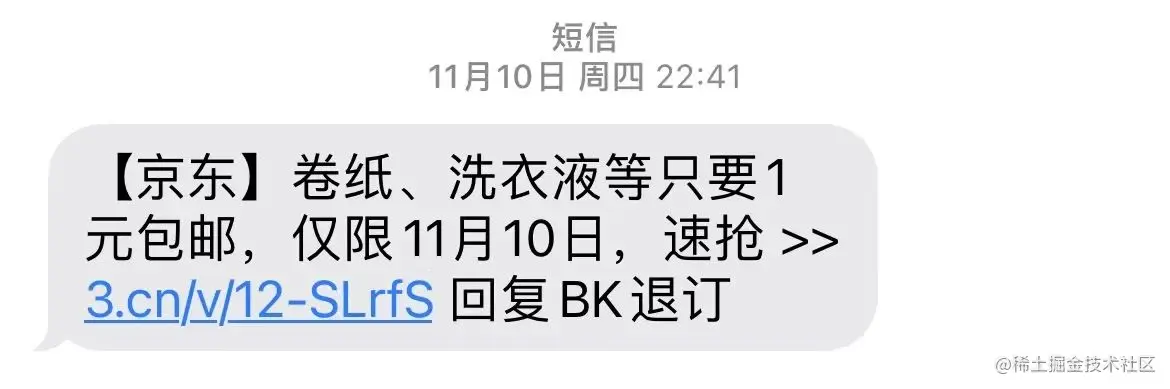 很明显,如果将这一长串网址发给用户,是十分不“体面”的。而且,遇到一些有字数限制的系统里面,比如微博发帖子就有字数限制,肯定无法发送这样的长链接地址。一般的短信链接中,大多也都是短链接地址: