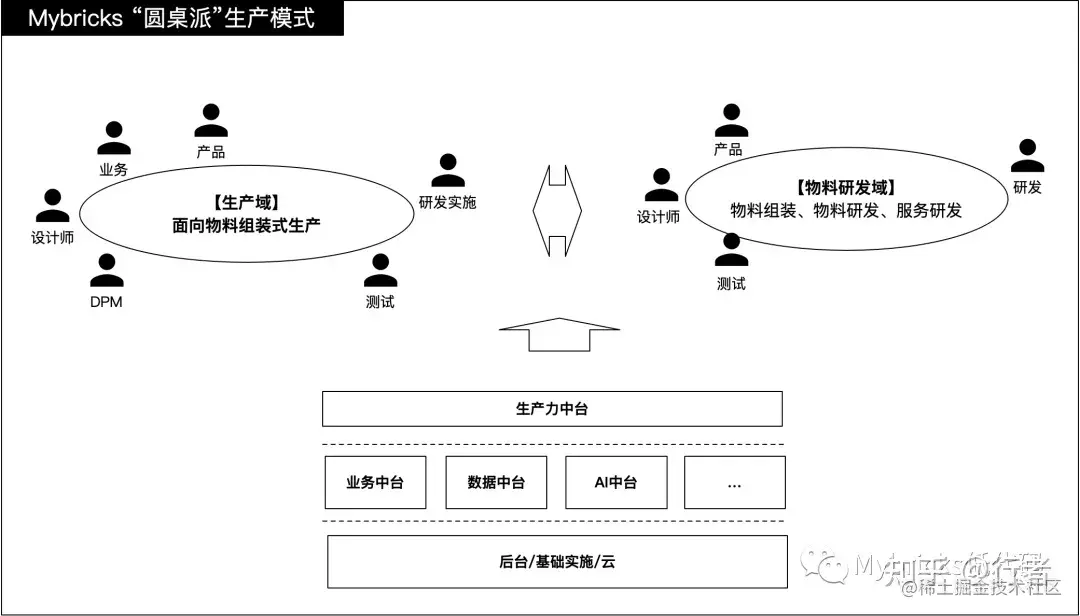 这些方面都指明了一个新的发展方向,即在中台的基础上再进一步优化协同方式,让业务人员有能力直接参与生产,中后台根据前台需要随时协作。与此同时,将原来的业务等待研发、串行化、接力赛式的生产过程转换为业务自己实施、并行化、圆桌派式的生产方式。