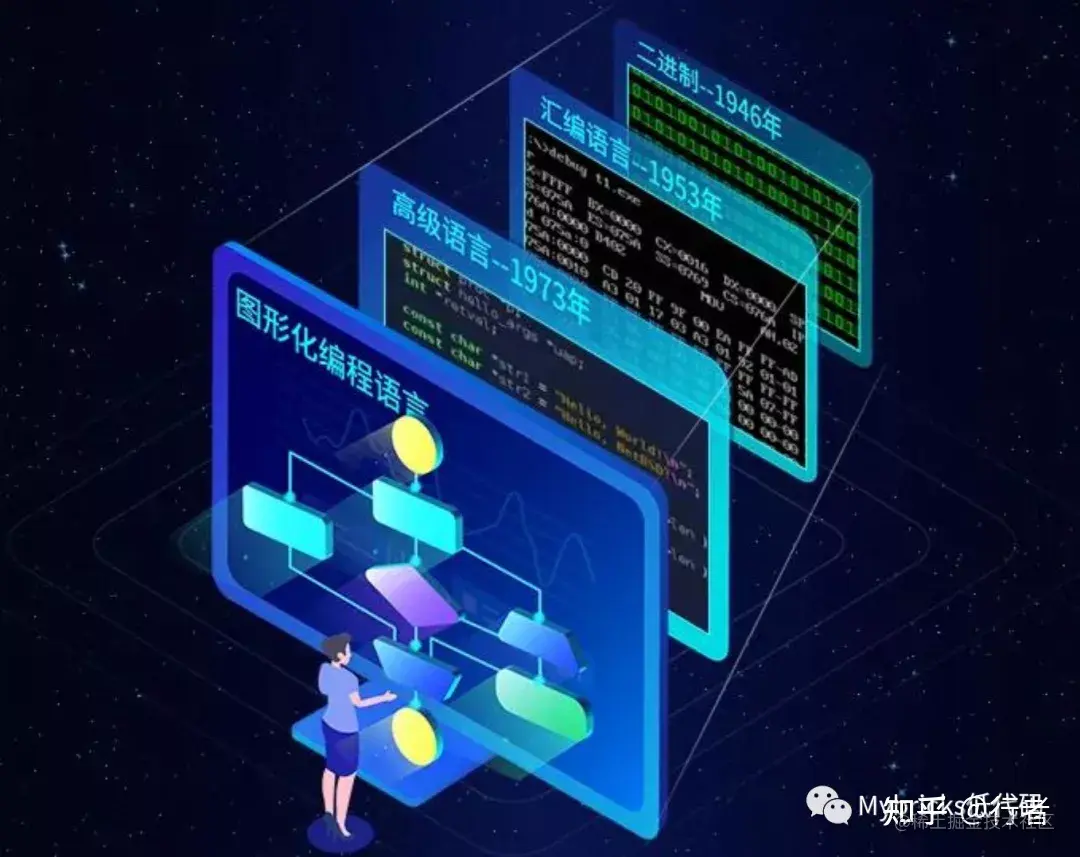我们在这一版块阐述低代码的发展演化过程,从历次计算机信息技术发展产生的不同生产力平台、语言以及服务的用户的变迁,以及讨论关于低代码是创新还是所谓新瓶装旧酒的话题,最后讲述从Pro-code、Low-code、No-code到未来的AI-code的发展过程。