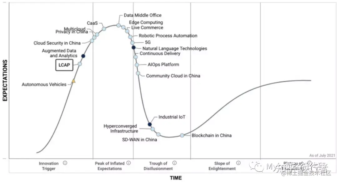 从上图中Gartner技术成熟度曲线上LCAP的位置可以看到,目前低代码产业还处于上升爬坡期,这个阶段,被称为Peak of Inflated Expectations,早期行业公众的过度关注催生了一系列成功的故事,当然同时也有众多失败的例子。在这个泡沫与啤酒并存的阶段,各种商业模式、产品方法还在快速迭代过程中,在未来,各类厂商、专属低代码与通用低代码、低代码与无代码,在很多方面还会进一步发展交叉演化,让我们持续观察。