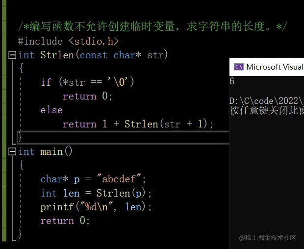 主要思想:当字符串为空的时候自然返回0,然后调用自己,完后走一位,走之前先加1直到结束