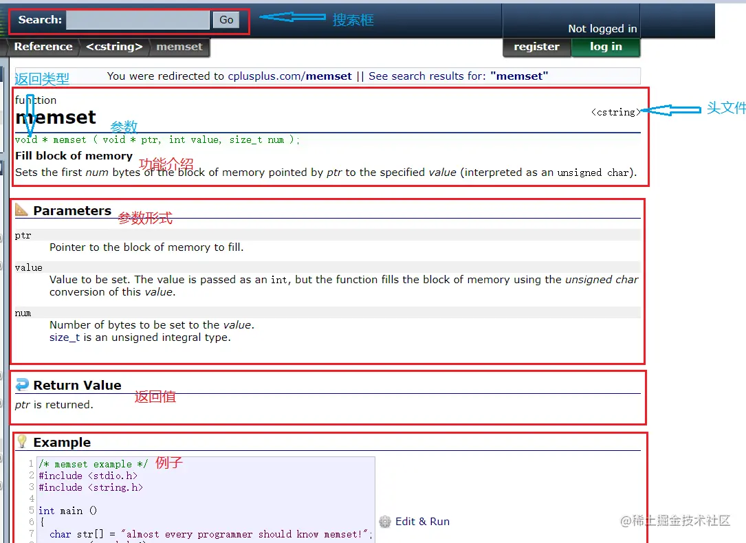 注意点: 但是库函数必须知道的一个秘密就是:使用库函数,必须包含 #include 对应的头文件。 这里对照文档来学习上面几个库函数,目的是掌握库函数的使用方法。