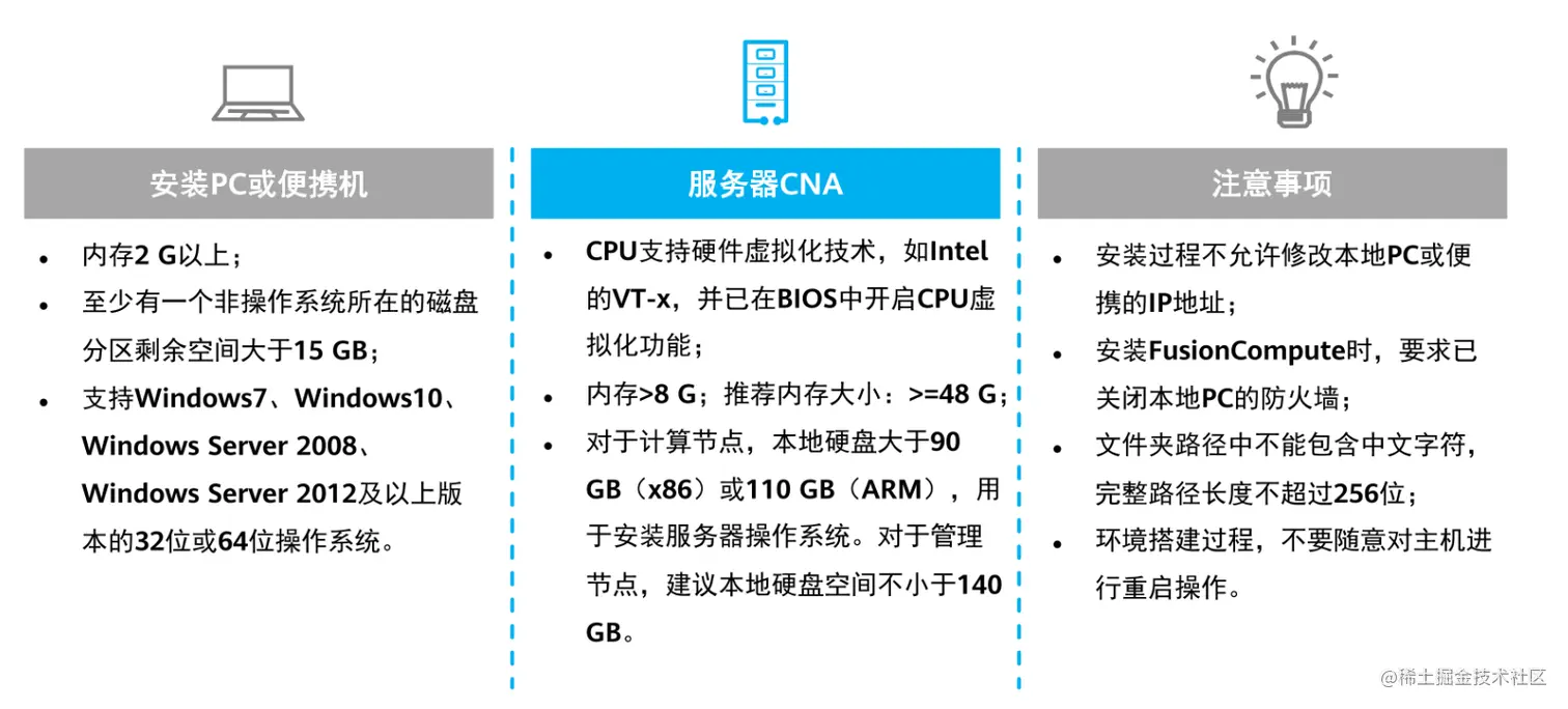 •安装FusionCompute时,本地PC需要满足一定要求,才能保证正确安装。