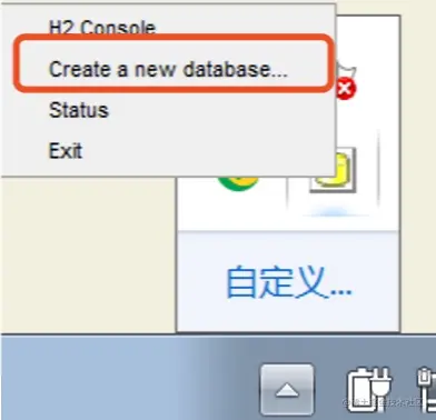 我们可以在windows窗口右下角,右键点击H2控制台的图标,选择”Create a new database...“,创建一个新的数据库。