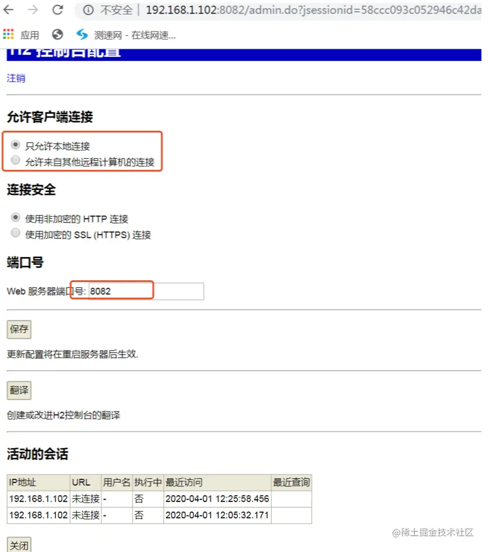 我们也可以点击”配置“按钮,进入到H2的配置界面,这里可以设置端口号等信息;