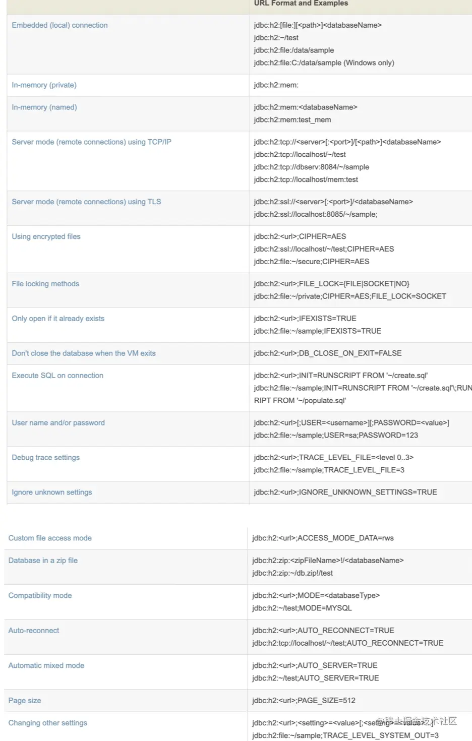 以下表格中是H2 数据库不同模式的连接字串,各位可以参考。