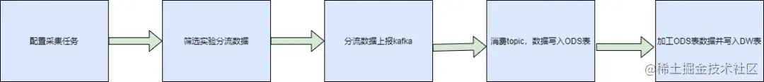 H5实验的分流数据保存在霍金VUA平台的access_log中,经过如下几个步骤最终存入HIVE库的DW表中,供后续的数据分析使用。