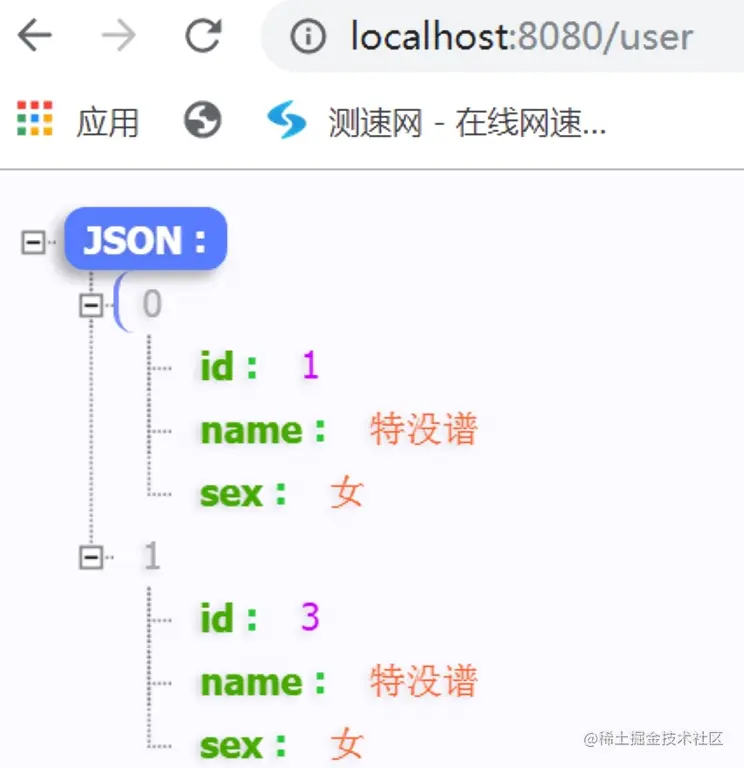 然后我们在浏览器中再执行查询请求,可以查到所有的数据信息。