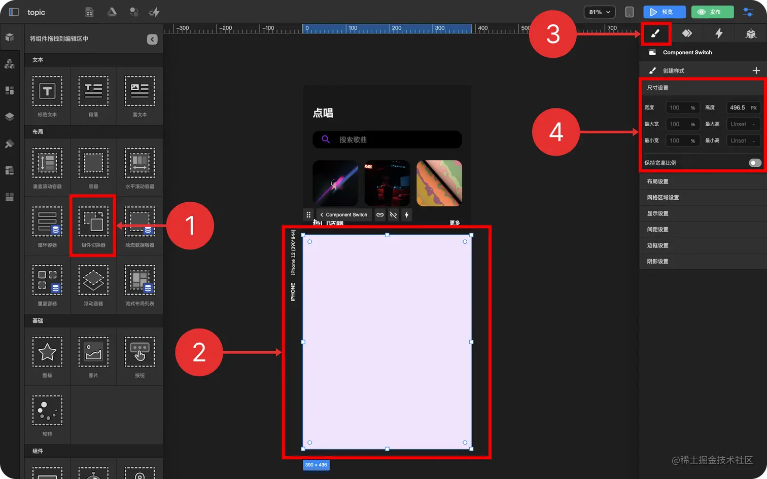 - 调整 组件切换器 样式