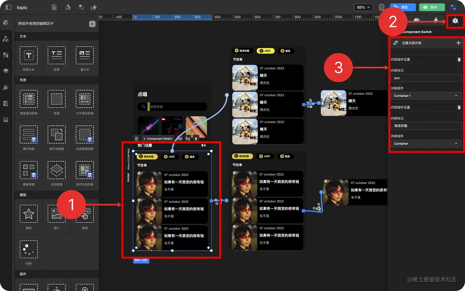 - 设置组件切换器关联内容