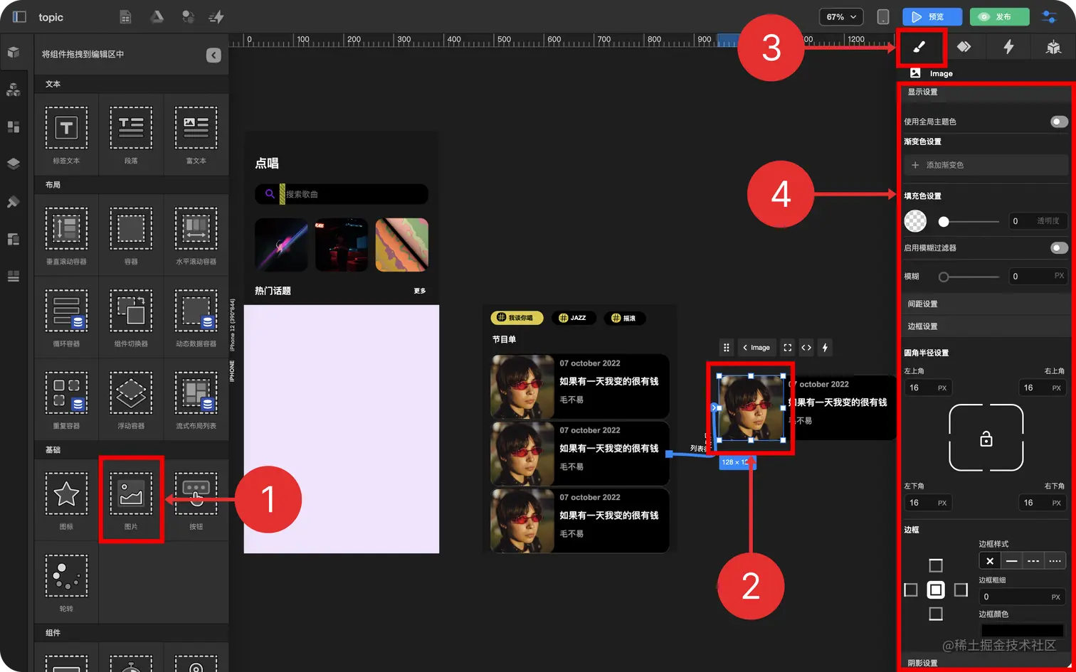 - 拖拽 图片组件 到 循环列表项
