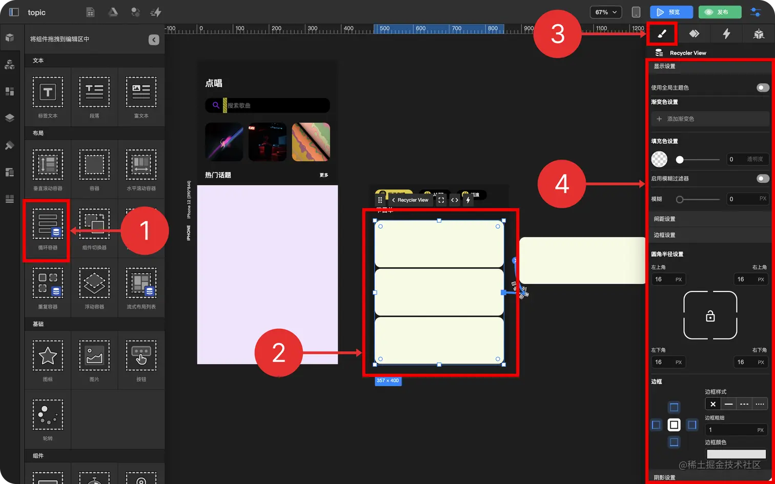 - 配置 循环容器 的 样式