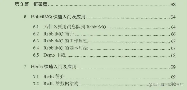 第三篇,框架篇主讲中间件和工具的使用,包括消息队列、缓存、Job、集中式日志、应用监控和微服务等;