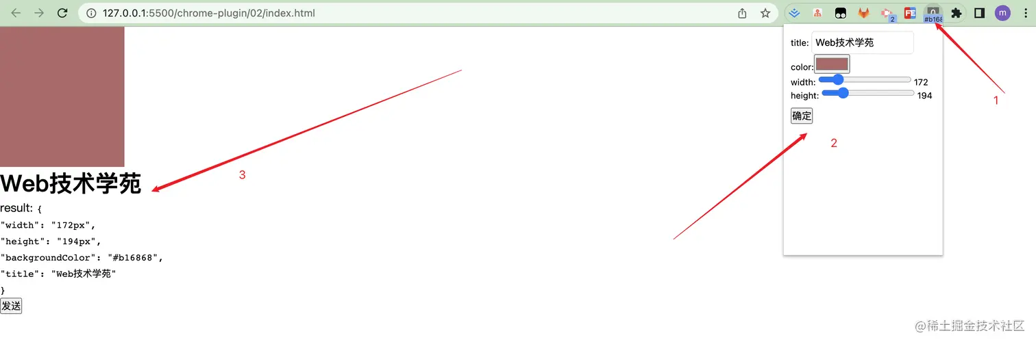 我通过插件中的popup.js与content.js通信,就可以修改我当前页面上的元素了,当我调整插件的width与height,我当前打开的页面的元素也会对应变化