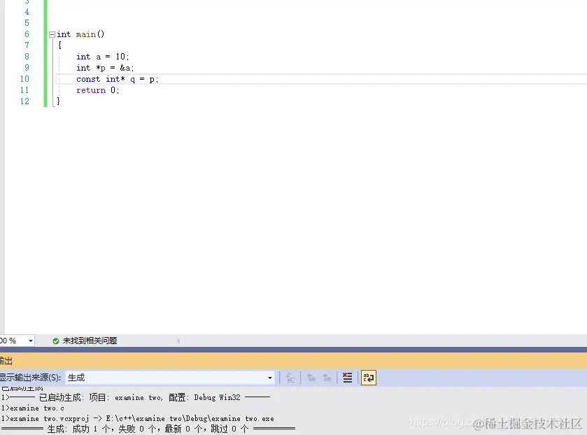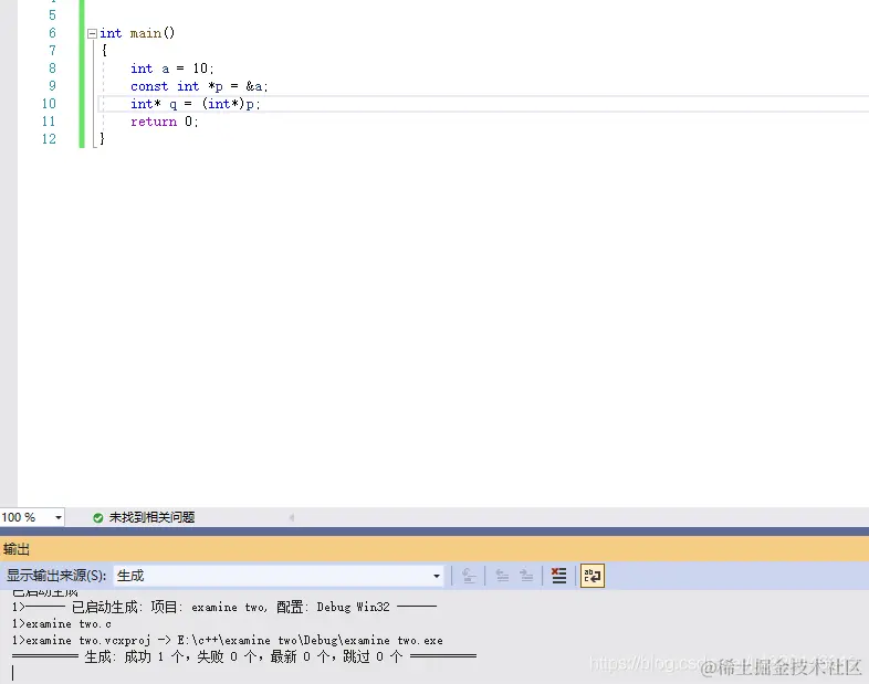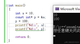 报错了,说明了const是限制了p这个变量,对*p这个指针变量没有任何影响。