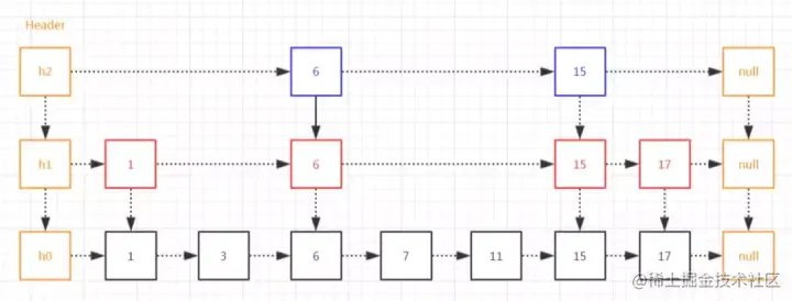 跳表在原有的有序链表上增加了多级索引,通过索引来实现快速查找