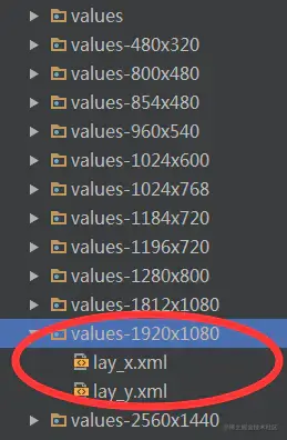 这种方式比较久远了,但是确实还是有很多项目在使用到这种方式 其原理就是据设备屏幕的分辨率各自写一套dimens.xml文件,然后根据一个基准分辨率(例如720x1080),将宽度分成720份,取值为1px——720px,将高度分成1080份,取值为1px——1080px。生成各自dimens.xml文件对应的值。