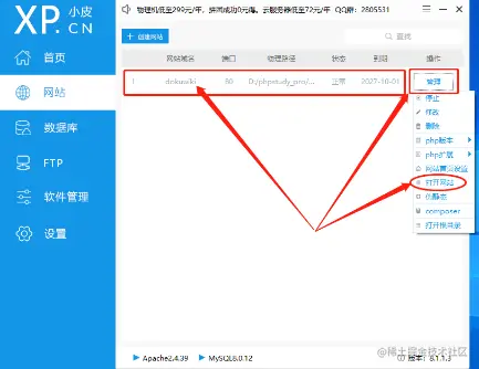 接着phpstudy就会显示dokuwiki的网页环境创建成功,我们可以点击对应网站环境条目右侧的“管理”按钮,找到并点击“打开网站”,就能看到dokuwiki已经成功安装到我们的电脑上。同样,我们也可以在浏览器地址栏中输入“localhost:80”通过本地打开dokuwiki网页。