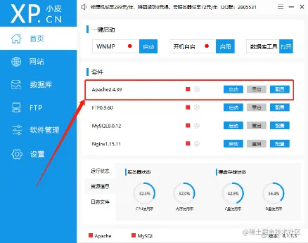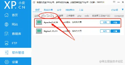 完成这两个软件的安装后,我们先打开phpstudy,设置DokuWiki的运行环境。Dokuwiki的运行主要依赖Apache、MyAQL、FileZilla,因此我们需要在phpstudy中安装这几个插件。首先打开phpstudy主界面,在主界面左侧找到“软件管理”项,接着在右侧上方位置找到“php”选项,点击就能筛选处各个版本的php软件。选定所需的php版本后,点击所选版本右侧的“安装”即可。同理,我们在“数据库”中找到MySQL,在“FileZilla”中找到fileAZilla,在“Web Servers”中找到apache。当然,我们也能在“全部”这个页面中找到所需的各个软件,只是比较费眼睛。