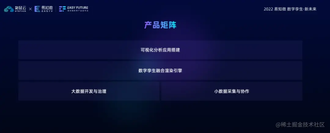 基于当前的产品矩阵逻辑架构图,易知微将进一步迭代和扩展,持续投入自研数字孪生融合渲染引擎和数字孪生可视化平台这样的技术产品创新,让数字孪生在产业数字化领域发挥更大的生产力,真正帮助每一个组织和个体看见并受益于数字化。