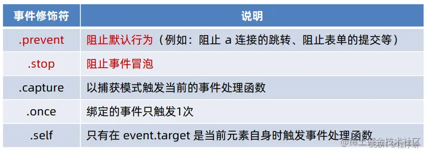 修饰符的概念,来辅助程序员更方便的对事件的触发进行控制。常用的5 个事件修饰符如下: