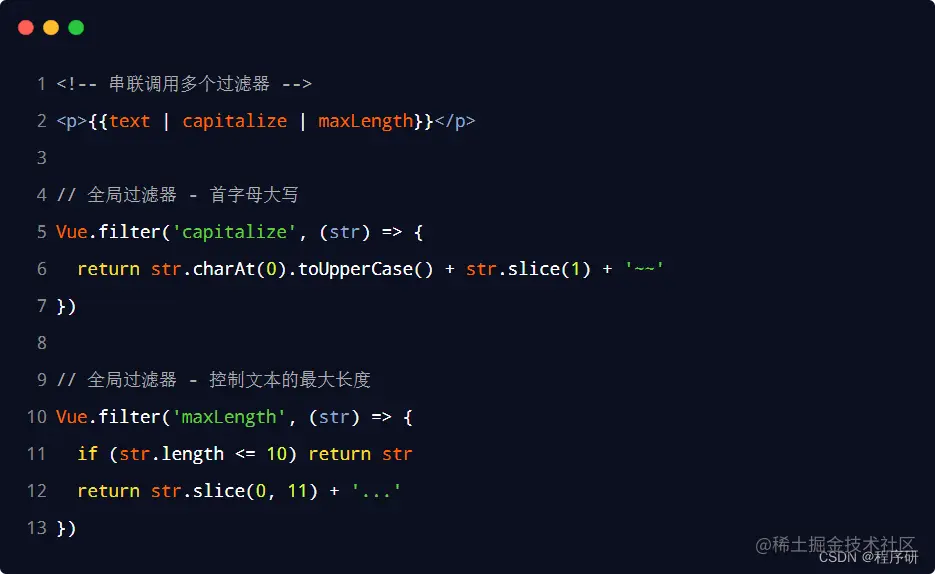 如果希望在多个vue 实例之间共享过滤器,则可以按照如下的格式定义全局过滤器: