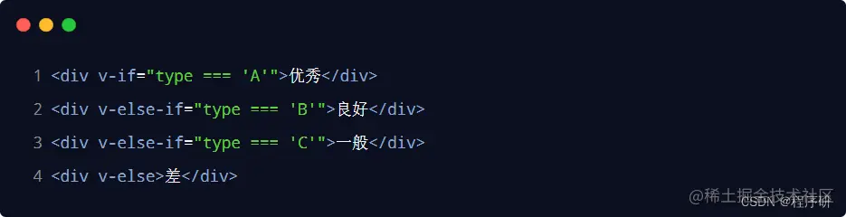 v-else-if 指令,顾名思义,充当v-if 的“else-if 块”,可以连续使用: