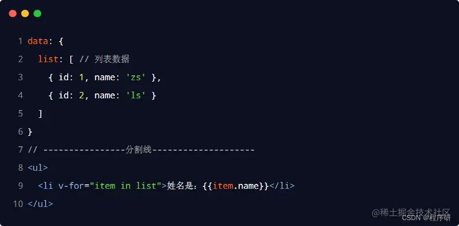 注意:v-for 指令中的item 项和index 索引都是形参,可以根据需要进行重命名。例如(user,i)in userlist