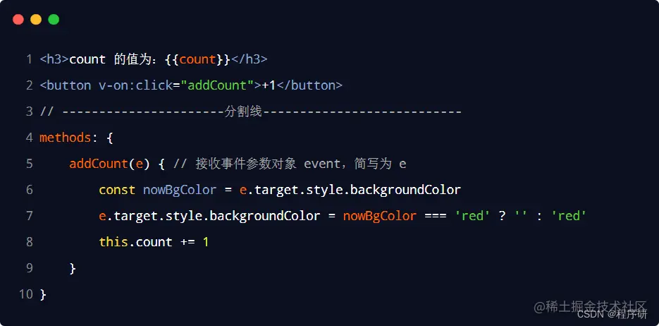 写为@ )所绑定的事件处理函数中,同样可以接收到事件对象event,示例代码如下: