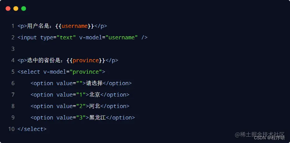 好处:开发者不再需要手动操作DOM 元素,来获取表单元素最新的值!